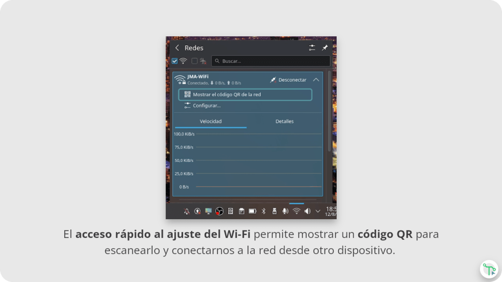 - El acceso rápido al ajuste del Wi-Fi permite mostrar un código QR para escanearlo y conectarnos a la red desde otro dispositivo.