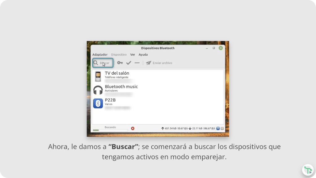 - Ahora, le damos a “Buscar”; se comenzará a buscar los dispositivos que tengamos activos en modo emparejar. Se mostrará una lista de los dispositivos cercanos.