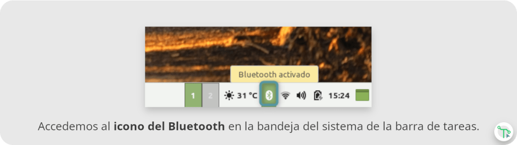 - Accedemos al icono del Bluetooth en la bandeja del sistema de la barra de tareas.