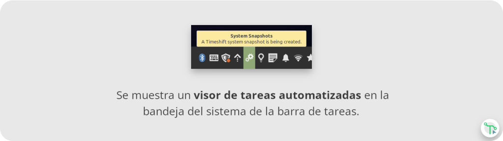 - Y, por último, ahora se muestra un visor de tareas automatizadas en la bandeja del sistema de la barra de tareas. Pongamos un ejemplo, si el gestor de copias de seguridad está haciendo copias en segundo plano, se mostrará en la bandeja del sistema un icono que señala que esta aplicación se está ejecutando.